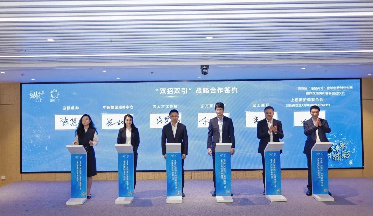作为沿沪宁产业创新带的重要节点,普陀具备面向国际国内两个扇面的独特区位优势和产业基础。为进一步吸引、集聚全球优秀人才,普陀正全面升级人才安居政策,保障各类人才来沪在沪“诗意栖居”。今年,普陀将以海外赛事为切入口,携手专业机构,与海外高校、科技企业、商会、校友会等开展合作,推动“请进来”与“走出去”引才协同、“招商”与“招才”双招联动。活动现场举行了“双招双引”战略合作签约,张润斌董事长代表上海新沪商联合会、新加坡国立大学商学院华东校友会签署了合作协议。