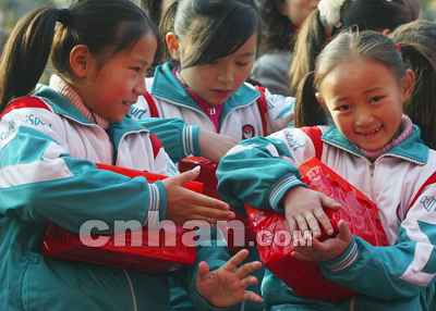 昨日,武汉图书大世界管理有限公司联合市妇联,组织100余家图书经营户,为黄陂、新洲等远城区"留守儿童"捐赠10万余元的图书。怀抱着获赠的图书,黄陂前川六小的学生们开心地笑了。