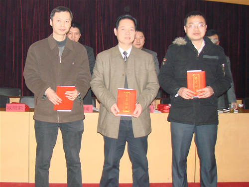 欧阳莉同志宣读了集团2006年度先进集体、优秀经理、先进个人表彰决定。公司领导为先进颁了奖。肖书浩同志和范惠菁同志代表受表彰的先进发了言。